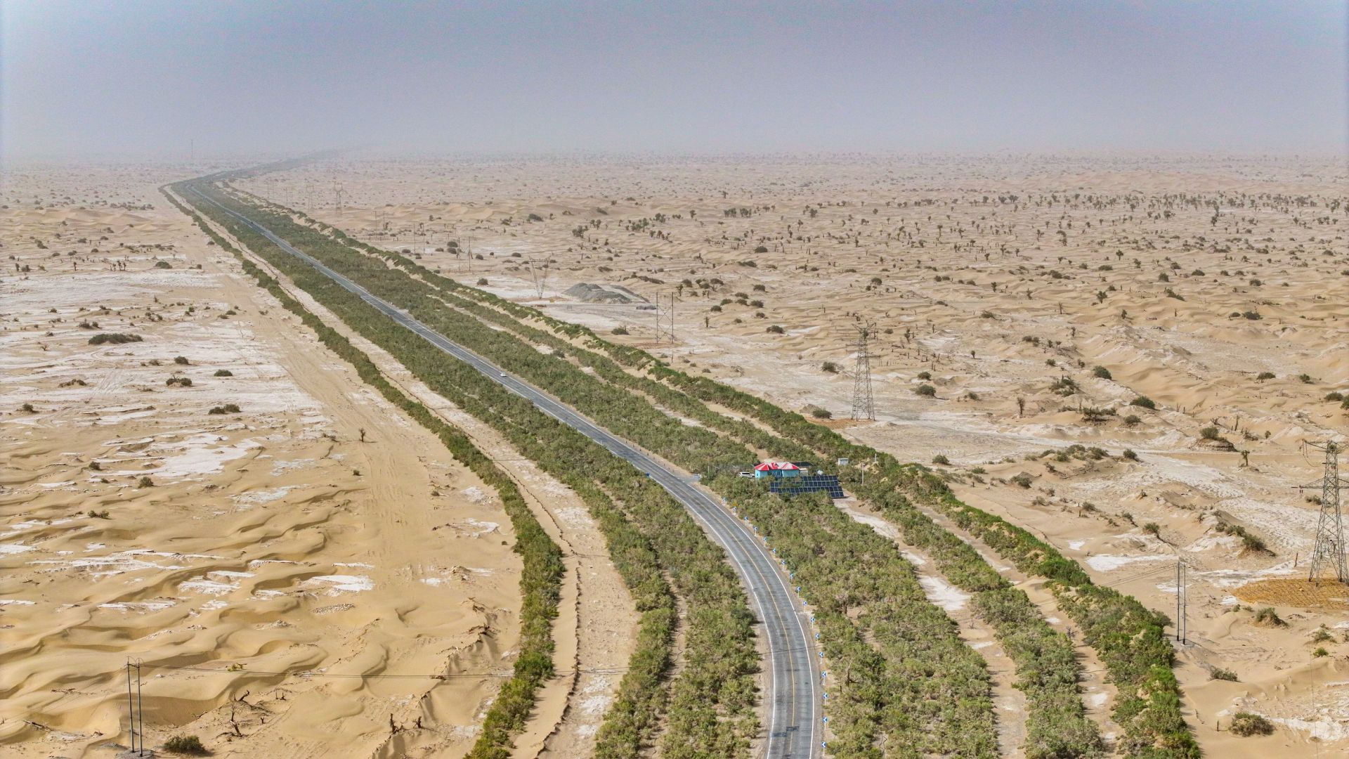 在素有“死亡之海”之称的塔克拉玛干沙漠,我国第一条沙漠——塔里木沙漠公路蜿蜒进入沙漠腹地。用这沙子...