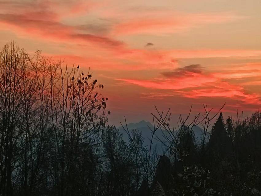 湖北日报客户端讯(通讯员 杨琼)大雪季节,暖冬并未停止。 12月10日,太阳的腿向西倾斜,温柔地亲吻着鹤峰山的背影。天空中的云朵骤然布满了猩红的色彩,将欲望蔓延到了整个天空。锅里炊烟滚滚,在云端等待着。烟雾混合在一起,营造出一种温暖的感觉。暮色变得更浓,红云原谅了炎热,褪成了浅红色,脱去了远山的眉毛。山风吹过吊脚楼,屋檐上流淌着母亲悠长的呼唤声,被阳光浸得软软糯糯的。晚餐时,蓝色的瓷砖散发出玉米酒的甜香,我有点醉了。光线在黄昏中编织出最柔和的温暖。夕阳拥抱着山顶,慢慢消失在西山的怀抱中。人们走胡晚饭后的ndred races将天空中的红云捕捉到了那方寸小相机上,将炎热的冬天冻结在一种不会消失的温柔中。