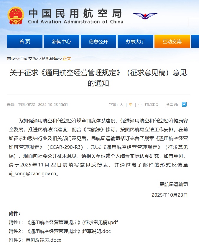 中国民用航空局就《通用航空运行管理条例》(